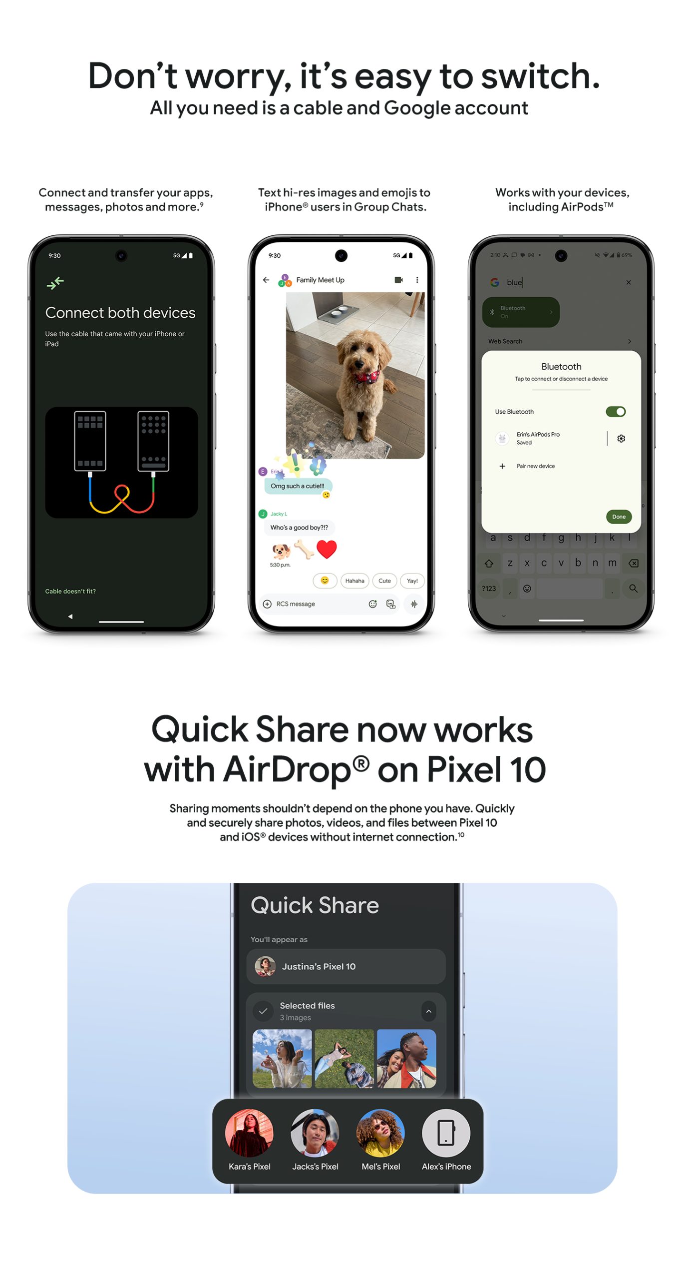 | Pixel 10a, 1 m USB-C® to USB-C® cable (USB 2.0), SIM tool |