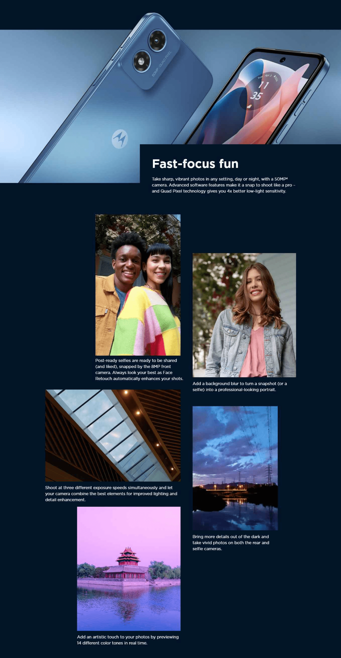 | Front Camera : 8MP Rear Camera : 50MP (Quad Pixel) |